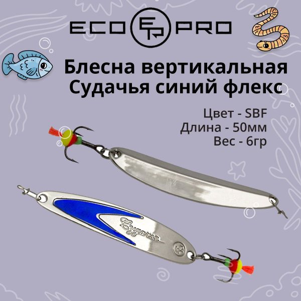 × Блесна для рыбалки ECOPRO Судачья синий флекс, 50мм, 6г, Sb/SBF зимняя на судака, щуку, окуня, вертикальная 339,00
