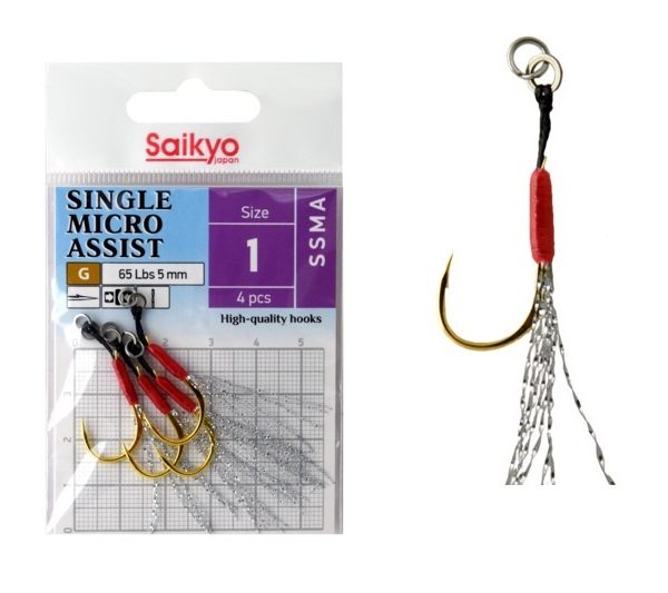 × Крючки для рыбалки одинарные ассист Saikyo SINGLE MICRO ASSIST SSMA №1 ( 1 упк. по 4 шт) 592,00