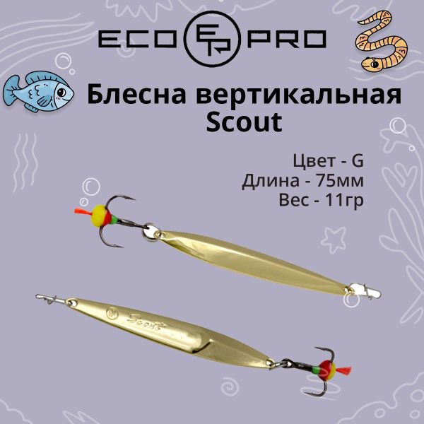 × Блесна для рыбалки ECOPRO Scout 75мм 11г, G, вертикальная 333,00