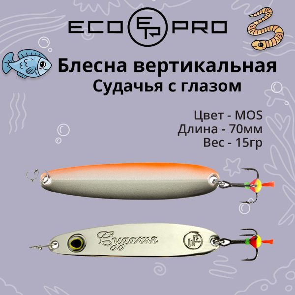 × Блесна для рыбалки ECOPRO Судачья с глазом, 70мм, 15г, MOS зимняя на судака, щуку, окуня, вертикальная 548,00