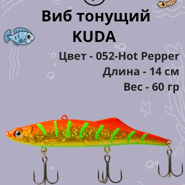 × Виб (тонущий воблер) для зимней рыбалки ECOPRO Kuda 140мм 60г 052-Hot Pepper 840,00