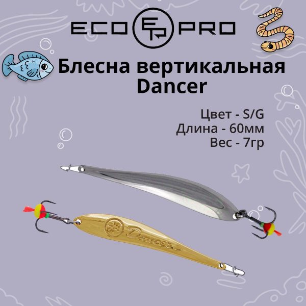 × Блесна для рыбалки ECOPRO Dancer, 60мм, 7г,S/G, вертикальная 385,00