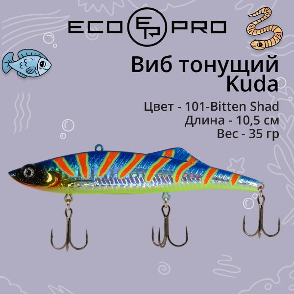 × Виб (тонущий воблер) для зимней рыбалки ECOPRO Kuda 105мм 35г 101-Bitten Shad на судака, щуку, окуня. 703,00