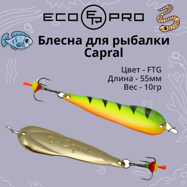 Хорошая поисковая приманка с широким плоским телом, имеющая планирующую игру, которая позволяет приманке уходить далеко в сторону от центра лунки. Блесна ECOPRO Capral показала хорошие результаты при ловле окуня, сига и щуки.
