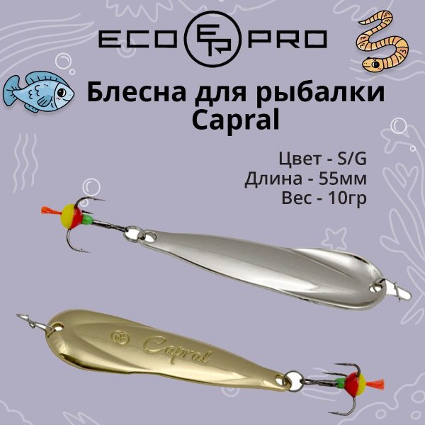 Хорошая поисковая приманка с широким плоским телом, имеющая планирующую игру, которая позволяет приманке уходить далеко в сторону от центра лунки. Блесна ECOPRO Capral показала хорошие результаты при ловле окуня, сига и щуки.