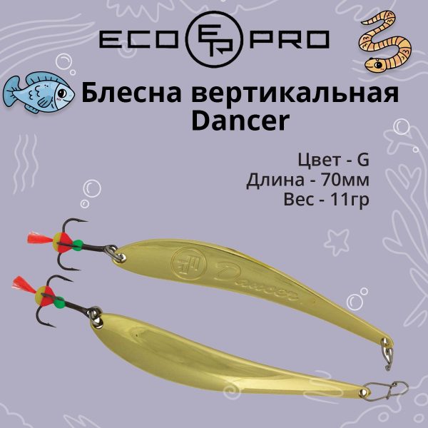 Блесна для рыбалки ECOPRO Dancer, 60мм, 8г, G/C, Двойной, вертикальная