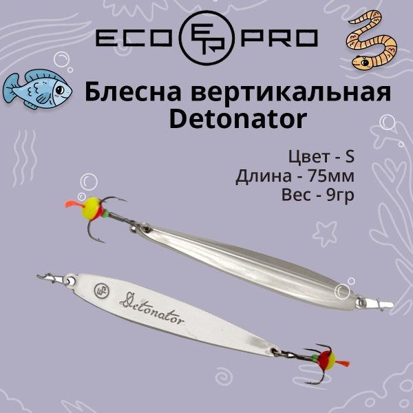 Хорошая поисковая блесна, собирающая рыбу с большого расстояния и обладающая ярко выраженной игрой. Приманка ECOPRO Detonator планирует из стороны в сторону, отклоняясь от вертикальной оси и переваливаясь с боку на бок. В конструкции приманки заложена возможность устанавливать крючок на оба конца блесны. После переустановки крючка приманка при падении начинает активнее «рыскать» из стороны в сторону.