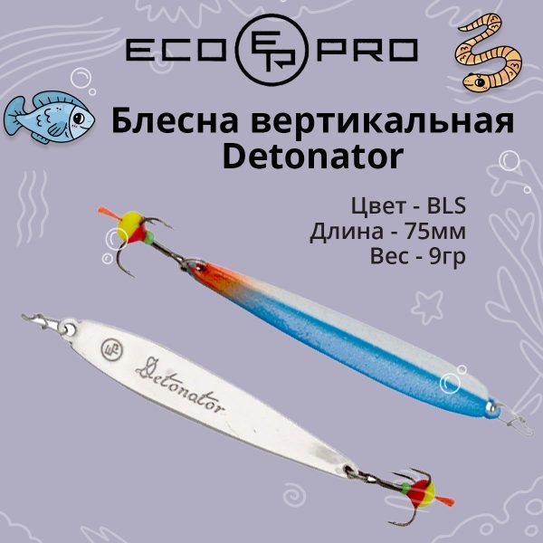 Хорошая поисковая блесна, собирающая рыбу с большого расстояния и обладающая ярко выраженной игрой. Приманка ECOPRO Detonator планирует из стороны в сторону, отклоняясь от вертикальной оси и переваливаясь с боку на бок. В конструкции приманки заложена возможность устанавливать крючок на оба конца блесны. После переустановки крючка приманка при падении начинает активнее «рыскать» из стороны в сторону.