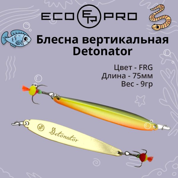 Хорошая поисковая блесна, собирающая рыбу с большого расстояния и обладающая ярко выраженной игрой. Приманка ECOPRO Detonator планирует из стороны в сторону, отклоняясь от вертикальной оси и переваливаясь с боку на бок. В конструкции приманки заложена возможность устанавливать крючок на оба конца блесны. После переустановки крючка приманка при падении начинает активнее «рыскать» из стороны в сторону.