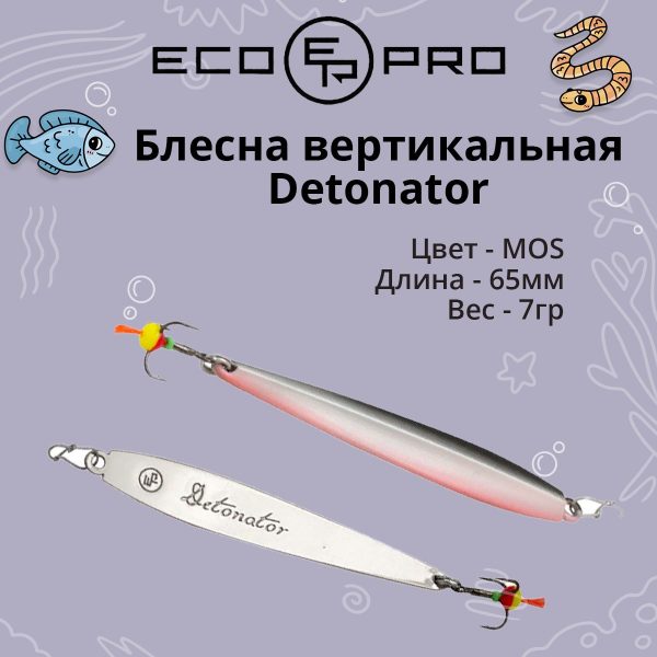 Хорошая поисковая блесна, собирающая рыбу с большого расстояния и обладающая ярко выраженной игрой. Приманка ECOPRO Detonator планирует из стороны в сторону, отклоняясь от вертикальной оси и переваливаясь с боку на бок. В конструкции приманки заложена возможность устанавливать крючок на оба конца блесны. После переустановки крючка приманка при падении начинает активнее «рыскать» из стороны в сторону.