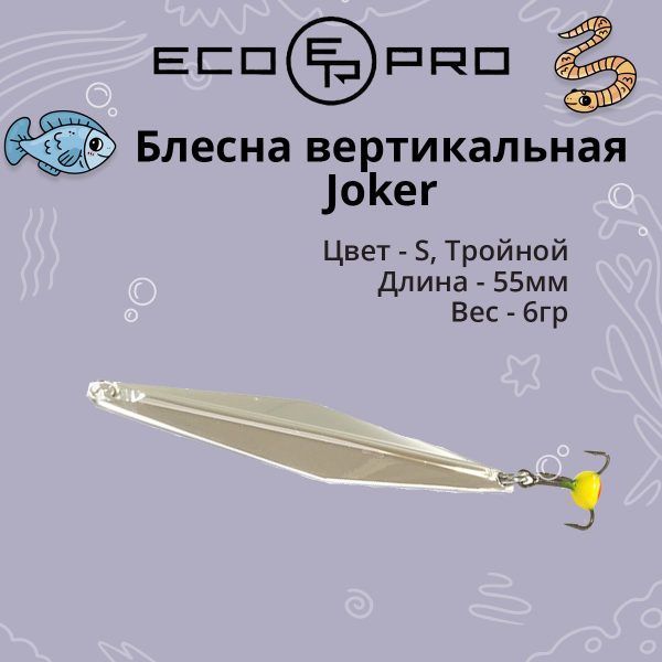 Блесна для рыбалки ECOPRO Joker, 55мм, 6г, S/G, Тройной, вертикальная