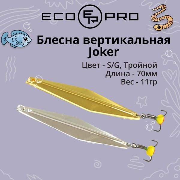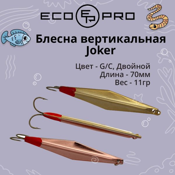 Вертикальная блесна Joker имеет форму ромба, с ярко выраженной гранью с обеих сторон. Обладает агрессивной «осыпающейся» игрой. Игра приманкой заключается в поднятии вершинкой удильника, резким сбросом и паузой не менее 4 секунд. Блесна очень проста в использовании, и очень результативна, не нужно большого опыта зимнего блеснения, за счет уникальной игры и простоты использования, вы не останетесь без улова.