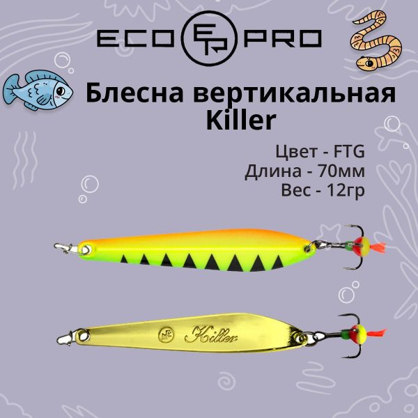 Блесна ECOPRO Killer – приманка, которая оправдывает свое название. Эта тяжелая приманка вытянутой формы великолепно подходит для ловли хищной рыбы на глубоких озерах и водоемах с течением. На сбросе блесна ложится на ребро и скользит в сторону и вниз от вертикальной оси, затем на натянутой леске возвращается в исходное положение к центру лунки. Приманка обладает стабильной игрой, что важно при ловле капризного окуня и судака в периоды плохого клева. Сделаны на крючках Saikyo Япония .
