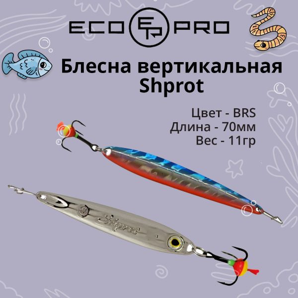 Блесна ECOPRO Shprot имеет уникальную форму, благодаря которой при взмахе удильником она сразу же принимает горизонтальное положение и начинает погружаться, выписывая «ёлочку» и активно переваливаясь с боку на бок. Хорошо зарекомендовала себя при ловле окуня и судака на Ладоге и Финском заливе, а широкий выбор цветов и размеров позволяет подобрать приманку подходящую для ловли в самых разнообразных условиях.