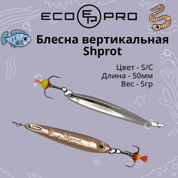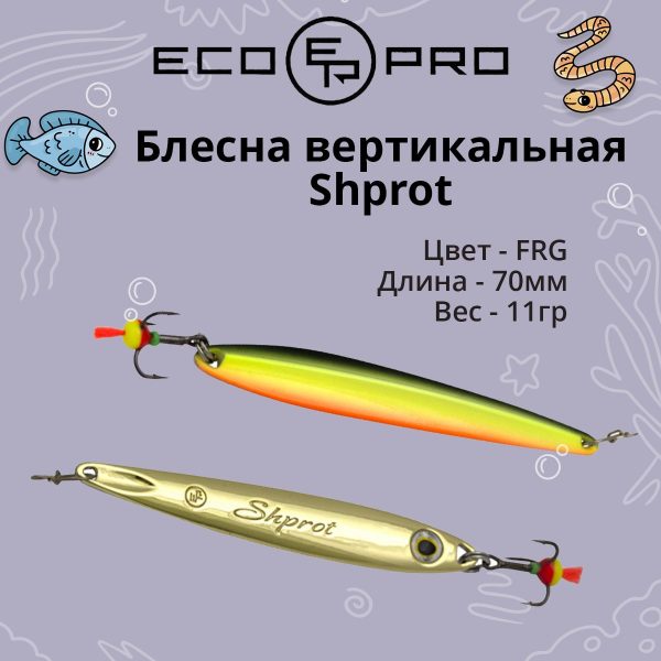Блесна ECOPRO Shprot имеет уникальную форму, благодаря которой при взмахе удильником она сразу же принимает горизонтальное положение и начинает погружаться, выписывая «ёлочку» и активно переваливаясь с боку на бок. Хорошо зарекомендовала себя при ловле окуня и судака на Ладоге и Финском заливе, а широкий выбор цветов и размеров позволяет подобрать приманку подходящую для ловли в самых разнообразных условиях.