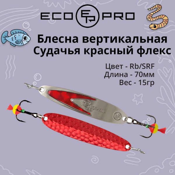 Блесна для рыбалки ECOPRO Судачья красный флекс,50мм, 6г, CRF зимняя на судака, щуку, окуня, вертикальная