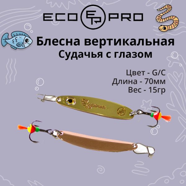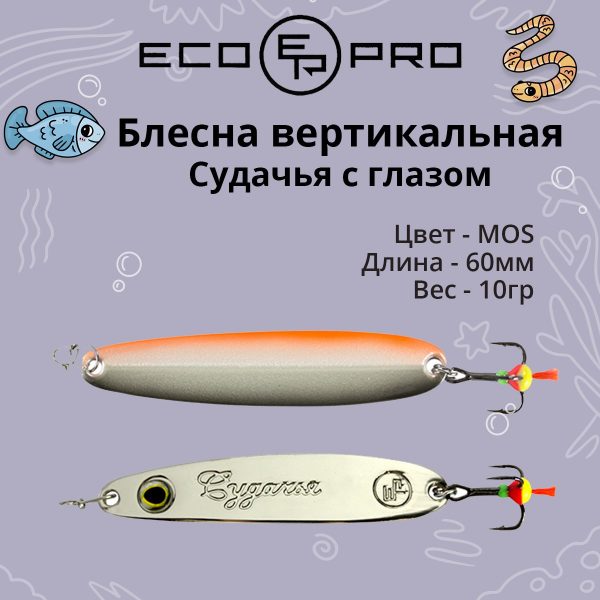 Блесна для рыбалки ECOPRO Судачья с глазом, 70мм, 15г, MOS зимняя на судака, щуку, окуня, вертикальная