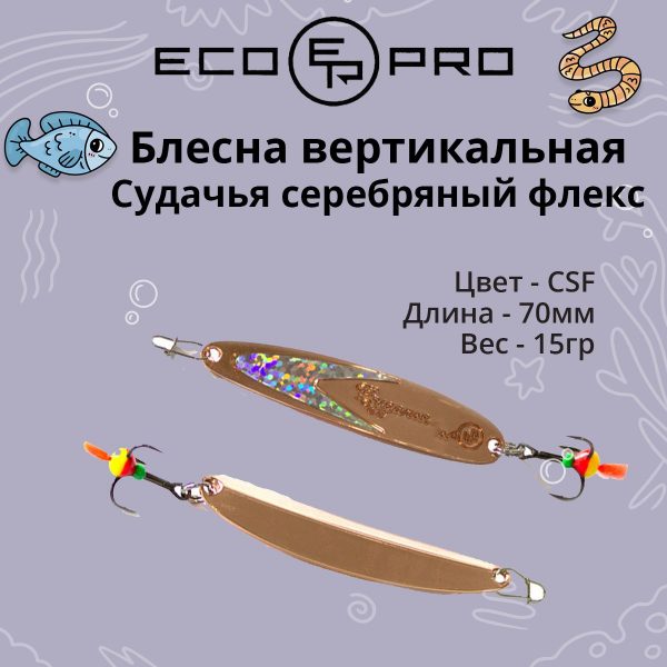 Блесна для рыбалки ECOPRO Судачья серебряный флекс, 60мм, 10г, SSF зимняя на судака, щуку, окуня, вертикальная