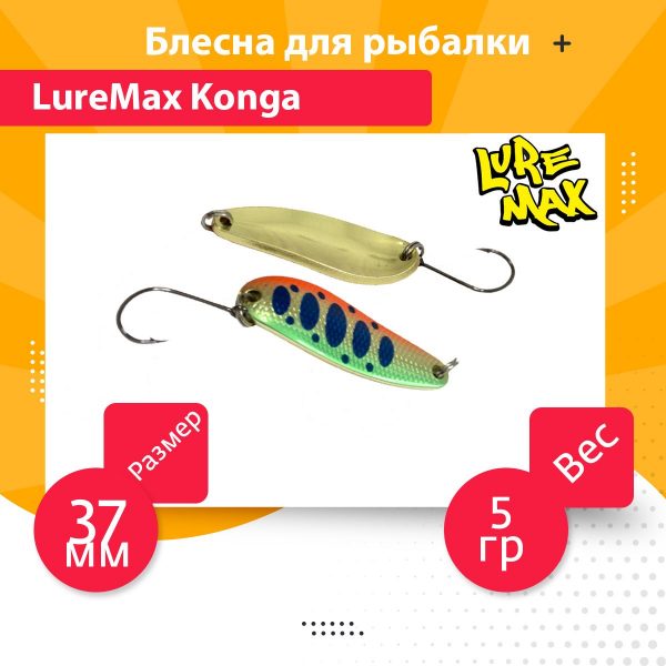Luremax Konga – колеблющаяся блесна классической вытянутой формы, отчеканенная из толстого металла, стабильно работает даже на очень сильном течении, и помимо форели прекрасно ловит голавля и окуня.