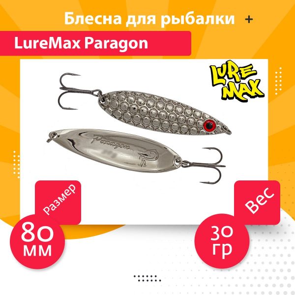 Колеблющаяся блесна вытянутой формы с S-образным изгибом и с центром тяжести, смещённым в заднюю часть приманки, благодаря чему эта блесна прекрасно летит при забросе и устойчиво играет на сильном течении. Блесна Luremax Paragon великолепно подходит для ловли жереха, судака, кумжи и лосося на реках с сильным течением. Оригинальная поверхность приманки придаёт блесне живой, мерцающий блеск, реалистично имитирующий мерцание чешуи кормовой рыбы.
