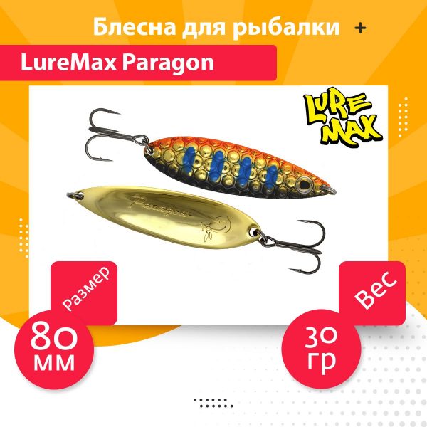 Колеблющаяся блесна вытянутой формы с S-образным изгибом и с центром тяжести, смещённым в заднюю часть приманки, благодаря чему эта блесна прекрасно летит при забросе и устойчиво играет на сильном течении. Блесна Luremax Paragon великолепно подходит для ловли жереха, судака, кумжи и лосося на реках с сильным течением. Оригинальная поверхность приманки придаёт блесне живой, мерцающий блеск, реалистично имитирующий мерцание чешуи кормовой рыбы.