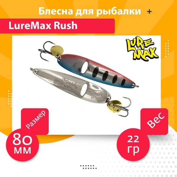 Блесна оригинальной конструкции – создаёт мощный акустический след, что позволяет рыбе обнаруживать приманку с большего расстояния. Лепесток на кольце тройника служит не только для создания визуального и акустического эффекта, но ещё вызывает к сбивке ритма игры блесны, заставляя приманку бросаться из стороны в сторону, реалистично имитируя поведение кормовой рыбы. Блесна Luremax Rush предназначена для ловли жереха, кумжи и лосося на реках с быстрым течением.