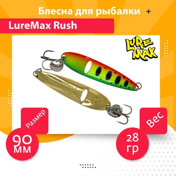 Блесна оригинальной конструкции – создаёт мощный акустический след, что позволяет рыбе обнаруживать приманку с большего расстояния. Лепесток на кольце тройника служит не только для создания визуального и акустического эффекта, но ещё вызывает к сбивке ритма игры блесны, заставляя приманку бросаться из стороны в сторону, реалистично имитируя поведение кормовой рыбы. Блесна Luremax Rush предназначена для ловли жереха, кумжи и лосося на реках с быстрым течением.