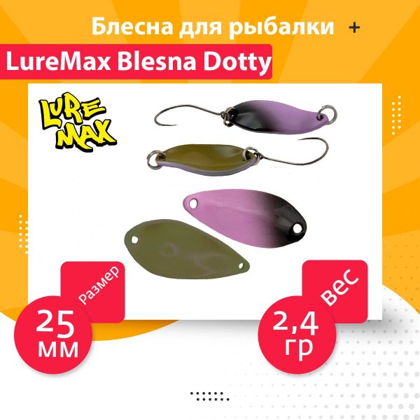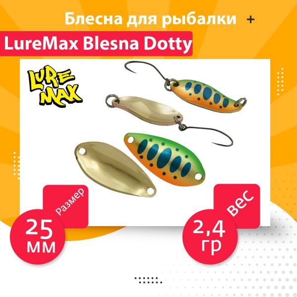 Luremax Dotty – небольшая приманка весом 2,4г. Благодаря своим компактным размерам помимо ловли традиционных хищников (форели, окуня, головля) подходит для ловли «белой» рыбы — язя, красноперки и т.д. Блесна имеет очень хорошую активную игру и не сбивается даже на самой активной проводке. Так же не смотря на малый вес у данной колебалки очень хорошие “полетные” качества.
