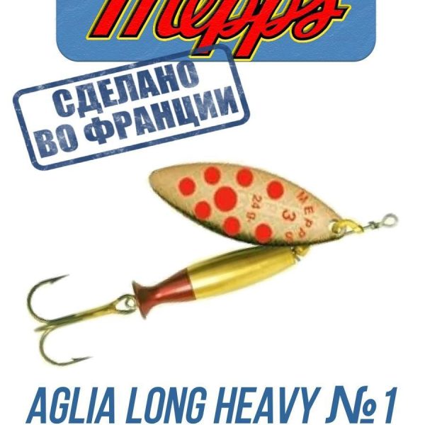 Благодаря пулеобразному тяжелому сердечнику возможен максимально дальний заброс Aglia Long Heavy. При вращении угол отклонения лепестка от оси составляет 30°. Рекомендуются для плотных потоков, быстрой и глубокой воды, а также для ловли против течения. Хороша и для использования в озерах при охоте на донных хищников, которые не реагируют на быстроходные приманки.