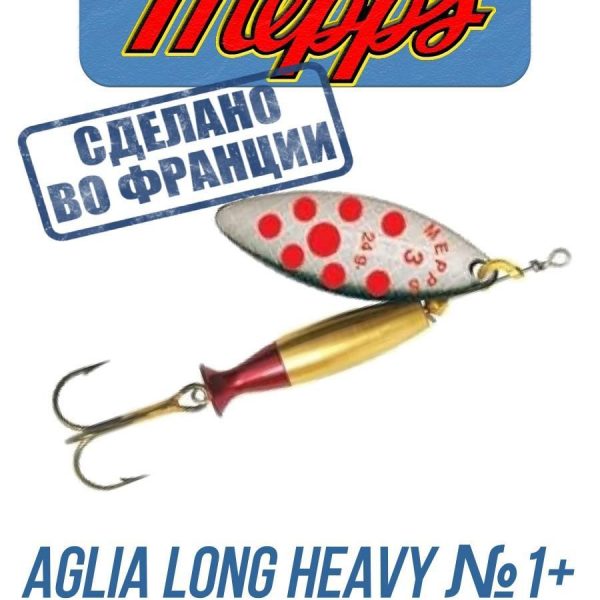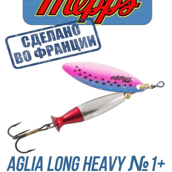Благодаря пулеобразному тяжелому сердечнику возможен максимально дальний заброс Aglia Long Heavy. При вращении угол отклонения лепестка от оси составляет 30°. Рекомендуются для плотных потоков, быстрой и глубокой воды, а также для ловли против течения. Хороша и для использования в озерах при охоте на донных хищников, которые не реагируют на быстроходные приманки.