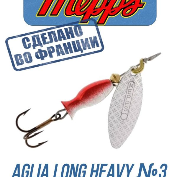 Благодаря пулеобразному тяжелому сердечнику возможен максимально дальний заброс Aglia Long Heavy. При вращении угол отклонения лепестка от оси составляет 30°. Рекомендуются для плотных потоков, быстрой и глубокой воды, а также для ловли против течения. Хороша и для использования в озерах при охоте на донных хищников, которые не реагируют на быстроходные приманки.
