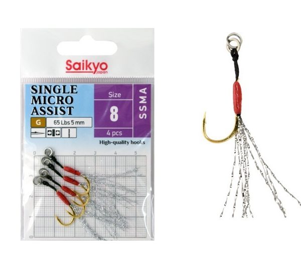 Крючки для рыбалки одинарные ассист Saikyo SINGLE ASSIST SSA №1/0 ( 1 упк. по 4 шт)
