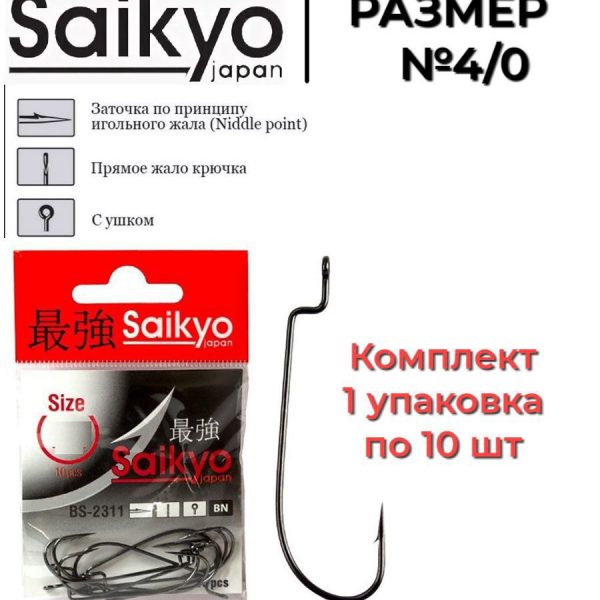 Крючки для рыбалки офсетные Saikyo BS-2312 BN № 6 ( 1 упк. по 10шт.)