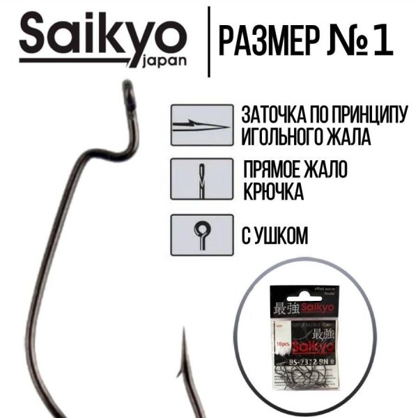 Крючки для рыбалки офсетные Saikyo BS-2312 R № 1 ( 1 упк. по 10шт.)