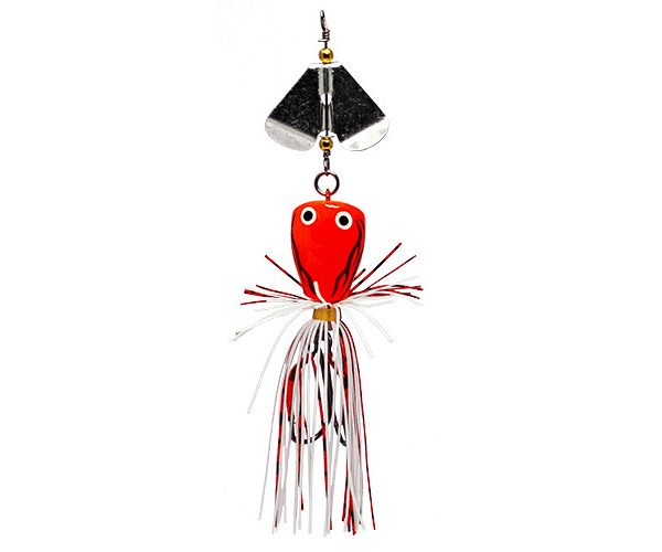 Приманка, оснащённая металлической турбинкой, создаёт мощный гидроакустический эффект, способный выманить хищника из самых густых зарослей водной растительности. Пластиковое тело в виде поппера с силиконовой бахромой, маскирующей двойной крючок, ещё больше усиливает привлекающий эффект приманки.
