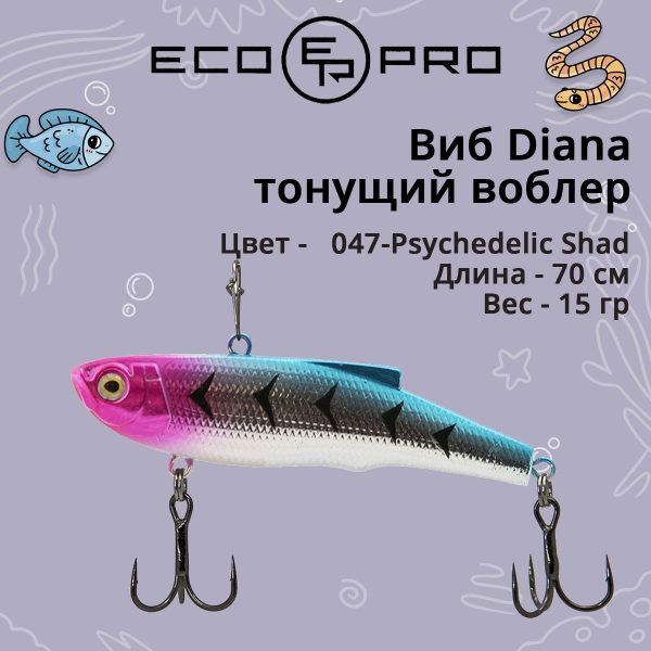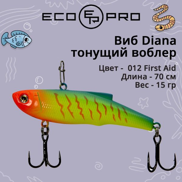 Виб (тонущий воблер) для зимней рыбалки ECOPRO Diana 70мм 15г 015 Blue Canary