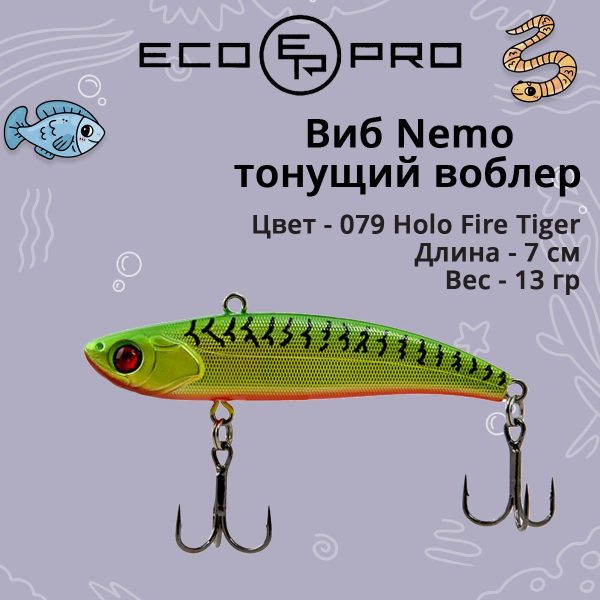 Воблер EcoPro Nemo Vib – это тонущий воблер класса «vibration», который подойдет для рыбалки в любых слоях воды.