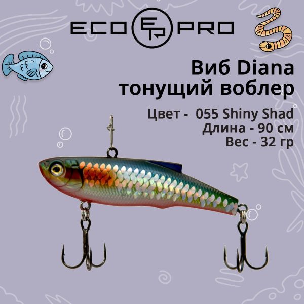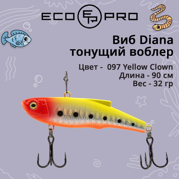 Виб (тонущий воблер) для зимней рыбалки ECOPRO Nemo Fin 90мм 28г 023 Broken Lime