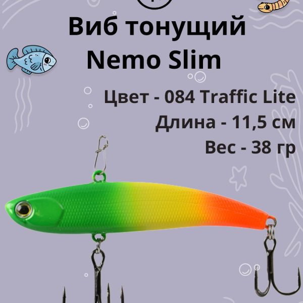 Воблер EcoPro Nemo Slim – это тонущий воблер класса «vibration», который подойдет для рыбалки в любых слоях воды.