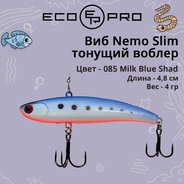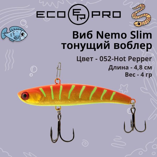 Воблер EcoPro Nemo Slim – это тонущий воблер класса «vibration», который подойдет для рыбалки в любых слоях воды.