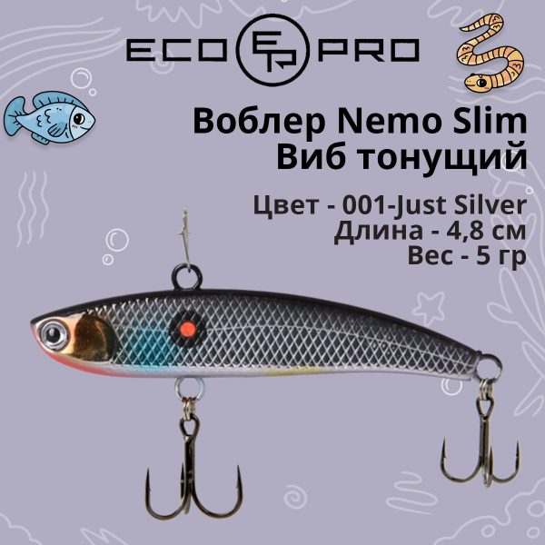 Воблер EcoPro Nemo Slim – это тонущий воблер класса «vibration», который подойдет для рыбалки в любых слоях воды.