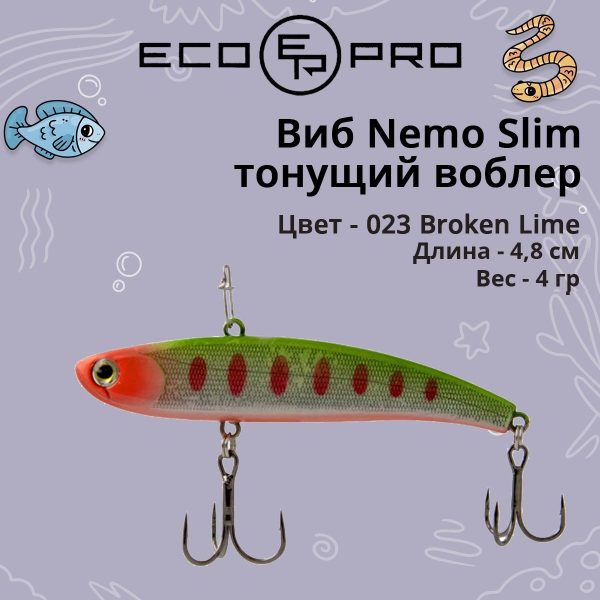 В отличие от EcoPro Nemo Vib, который стал прообразом этой приманки, линейка Slim является отличным дополнением в условиях, когда хищнику по нраву более узкотелая приманка с отличающимся рисунком игры.