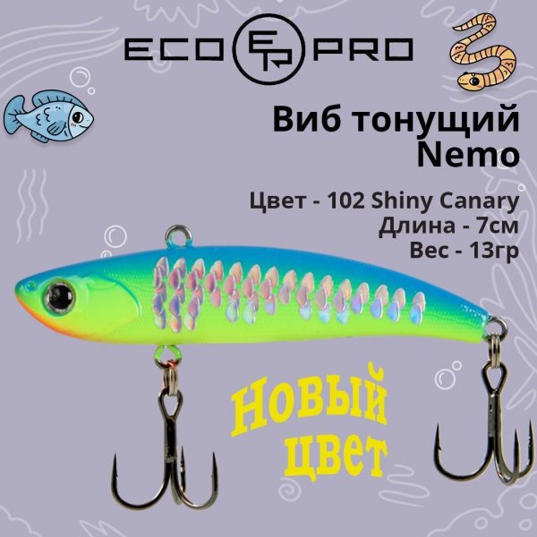 Воблер EcoPro Nemo Slim – это тонущий воблер класса «vibration», который подойдет для рыбалки в любых слоях воды.