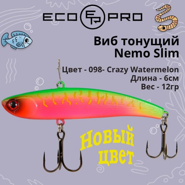 В отличие от EcoPro Nemo Vib, который стал прообразом этой приманки, линейка Slim является отличным дополнением в условиях, когда хищнику по нраву более узкотелая приманка с отличающимся рисунком игры.