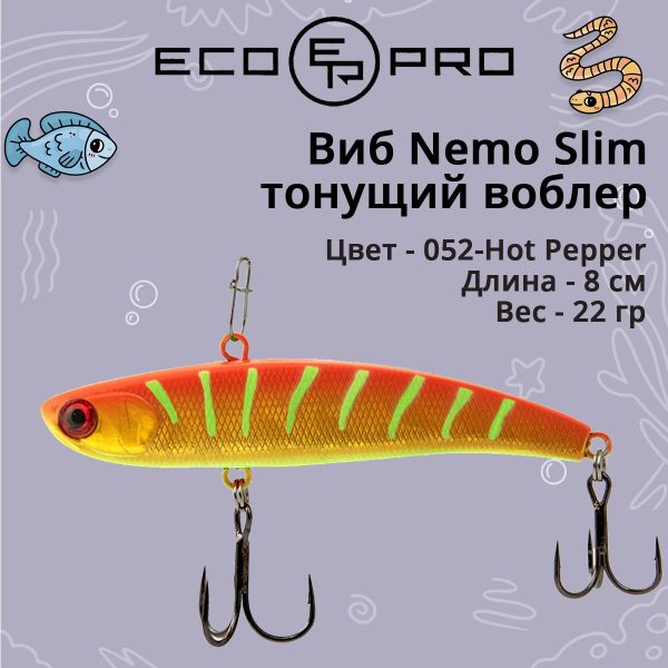 В отличие от EcoPro Nemo Vib, который стал прообразом этой приманки, линейка Slim является отличным дополнением в условиях, когда хищнику по нраву более узкотелая приманка с отличающимся рисунком игры.