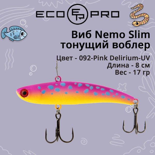 В отличие от EcoPro Nemo Vib, который стал прообразом этой приманки, линейка Slim является отличным дополнением в условиях, когда хищнику по нраву более узкотелая приманка с отличающимся рисунком игры.