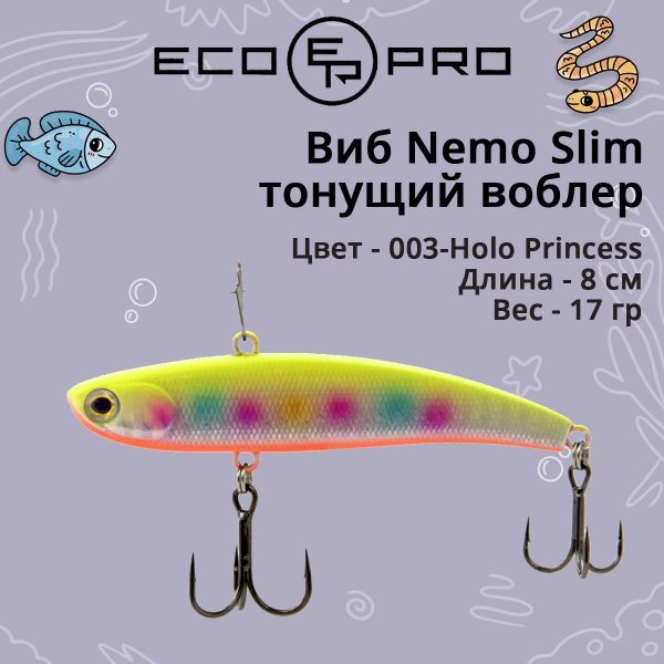 Виб (тонущий воблер) для зимней рыбалки ECOPRO Nemo Slim 80 мм 22г 003-Holo Princess