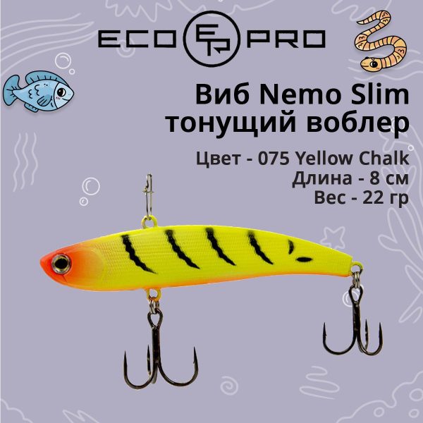 Воблер EcoPro Nemo Slim – это тонущий воблер класса «vibration», который подойдет для рыбалки в любых слоях воды.
