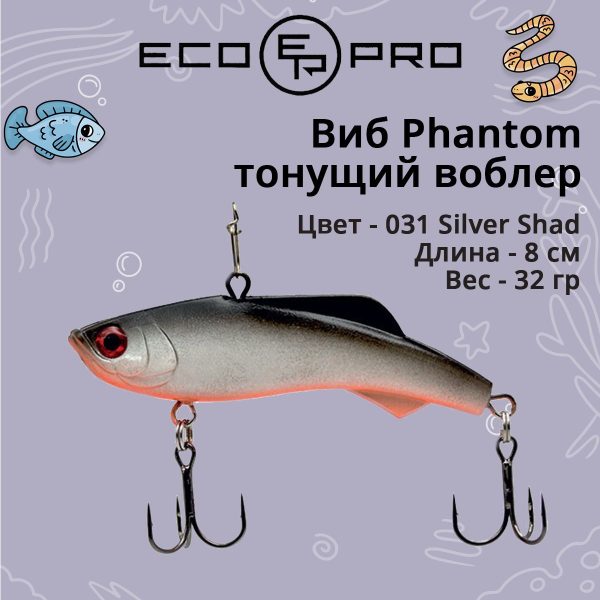 Виб (тонущий воблер) для зимней рыбалки ECOPRO Phantom 80мм 32г 023 Broken Lime