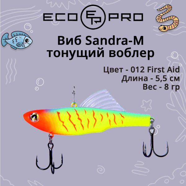 Воблер EcoPro Sandra-M – это тонущий воблер класса «vibration», который подойдет для рыбалки в любых слоях воды.
